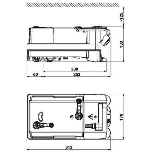 - Привод захищений від навантаження, не потребує кінцевих вимикачів і автоматично зупиняється при досягненні кінцевого упору;