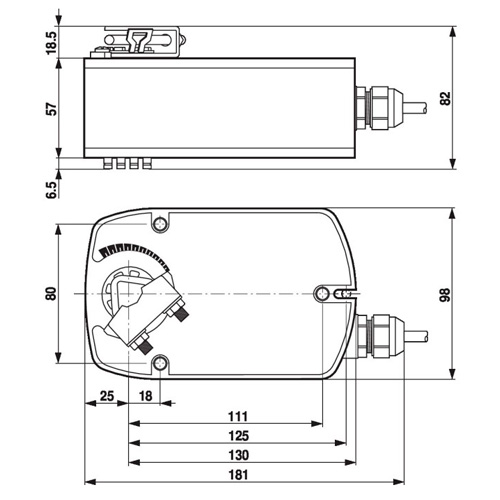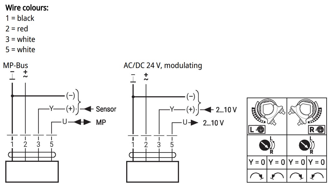 - Можливість підключення датчика (пасивний або активний датчик або перемикаючий контакт). MP привід служить як аналого-цифровий перетворювач передачі сигналу датчика через MP-Bus в систему вищого рівня.