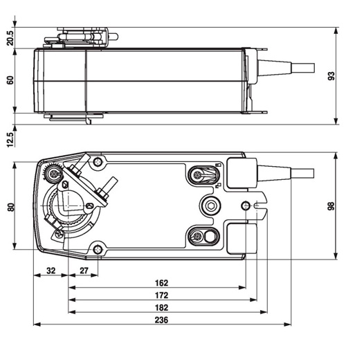 - Ручне керування. Можливе ручне керування за допомогою рукоятки на корпусі приводу.