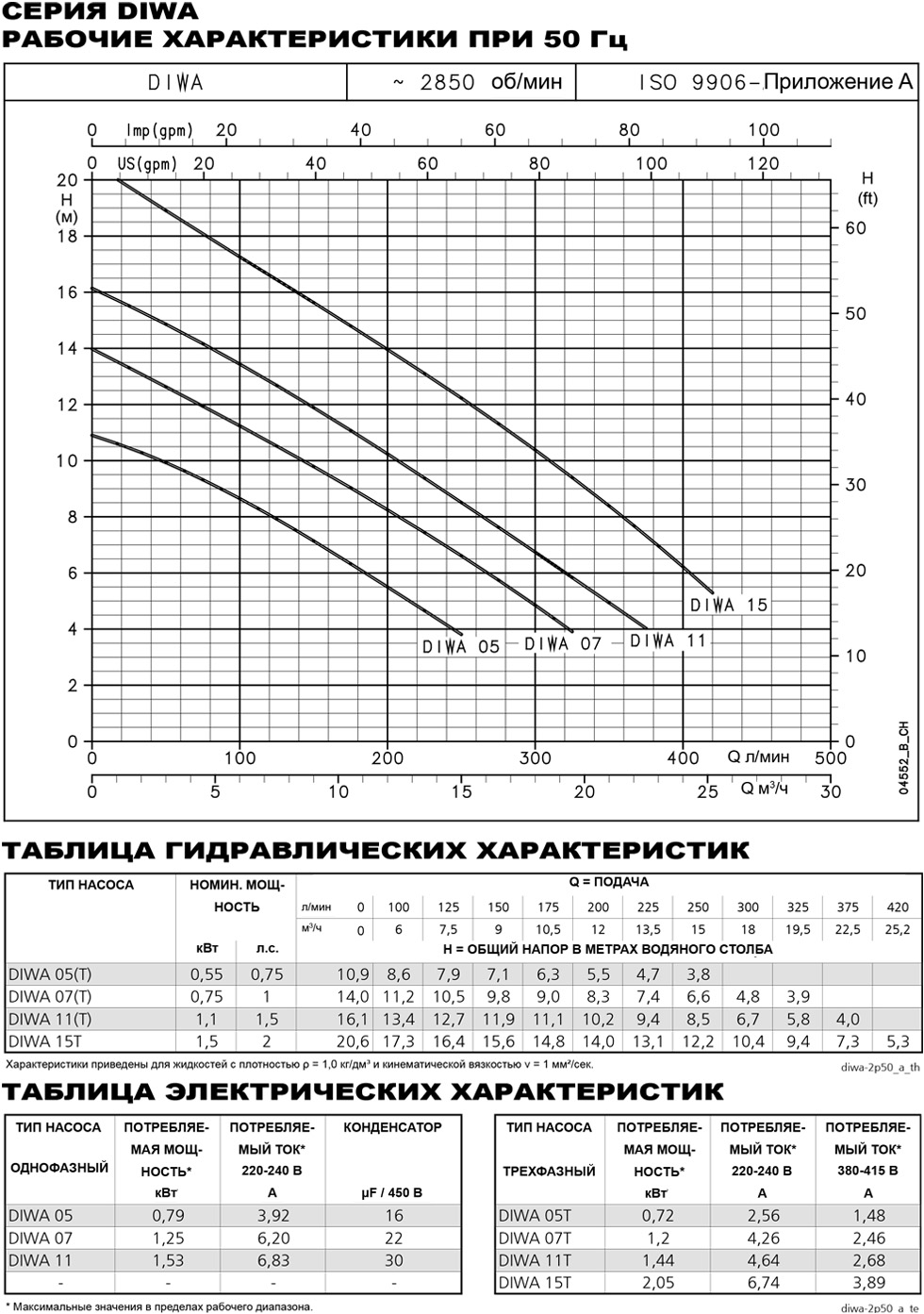 Насоси цієї серії відрізняються високими показниками об'єму рідини, що перекачується (до 420 л/м) і напору (до 20 м), і комплектуються однофазними/трифазними двигунами. Це одні з найфункціональніших і найпродуктивніших насосів для свого класу. Особливо варто відзначити надійну вологоізоляцію електродвигуна за рахунок використання кількох ущільнень та масляної камери для додаткової та 100%-ної герметизації. Диск зношування покритий поліуретановим еластомером для максимальної абразивної стійкості. Також є і тепловий захист, що встановлюється виробником опціонально.