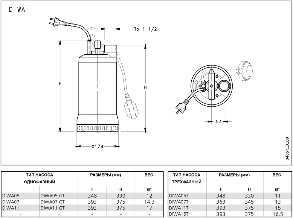Занурювальні насоси для чистої та злегка забрудненої води Lowara DIWA, виготовлені з нержавіючої сталі AISI 304, використовуються для перекачування брудної води та інших рідин, не агресивних до матеріалів насосу.