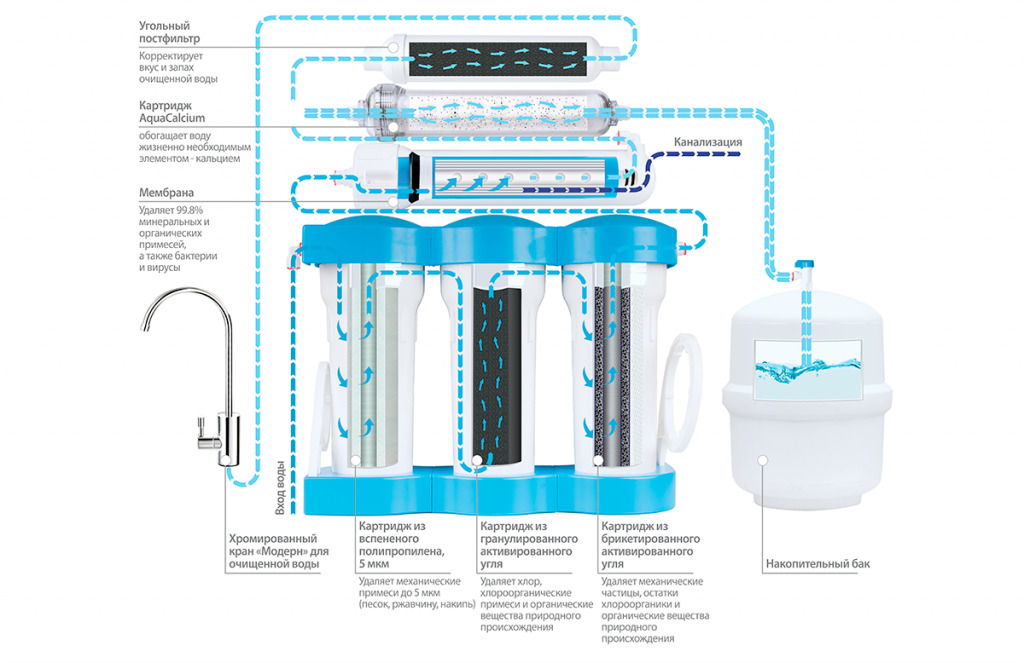 - Комплект картриджів тонкої очистки (мембрана + вугільний постфільтр)