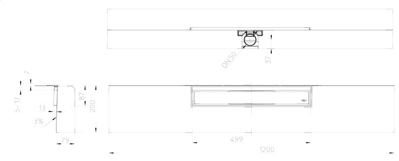 - Довжина душового лотка може бути зменшена від 1200 мм до 600 мм під час монтажу (відпиляти). За потреби можна збільшити довжину за допомогою подовжувача (арт. HL531V).
