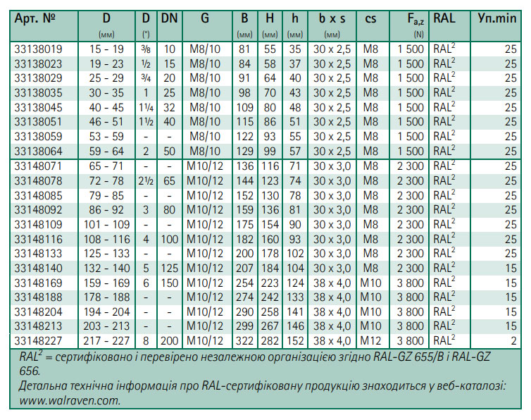 Хомут 40-45 мм (1 1/4") гайка M8/M10 Walraven BIS HD1501 BUP1000 (33138045)