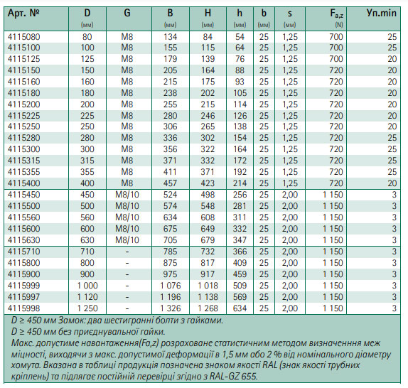 - унікальний гумовий вкладиш заплавлений у перфорацію хомута (це запобігає випаданню вкладки при ковзанні труби)