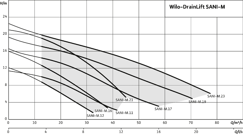 Компактна напірна установка для відведення фекалій Wilo-DrainLift SANI-M завдяки одинарному насосу великого об'єму та електродвигуну з можливістю вибору режимів «Тривала робота» та «Повторно-короткочасний режим роботи» є ідеальним рішенням для застосування в одно- та двоквартирних будинках з неконтрольованим парканом вод. Установка, що легко вбудовується, практично універсальна завдяки наявності вільного проходу від 44 мм до 65 мм, вибирається припливним отворам і опціональному виконанню для особливо агресивних рідин, що перекачуються.