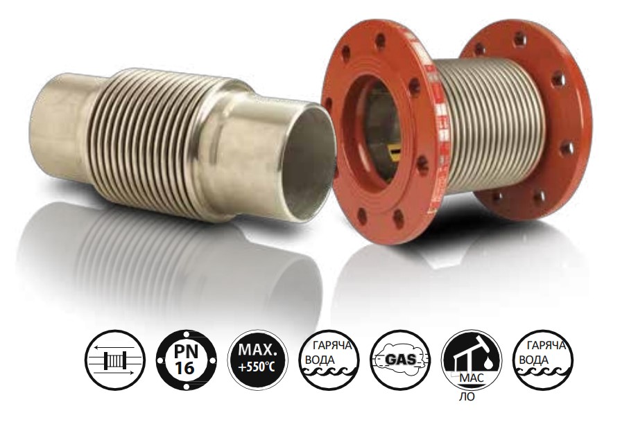 - Легко вбирає осьові рухи трубопроводів.