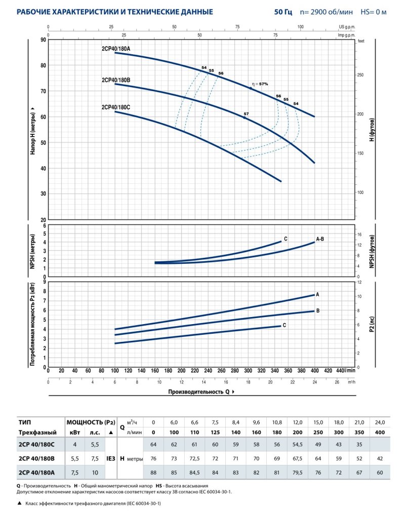 Багатоступінчастий відцентровий насос Pedrollo 2CP 40/180A 3~400 | 7.5 кВт (452CT403AE)