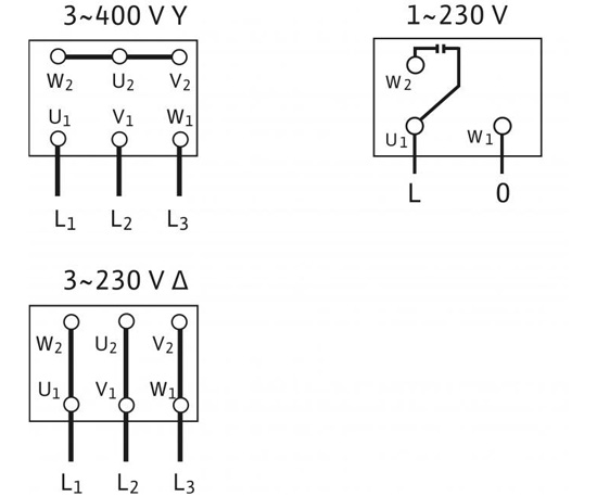 - Подібний електродвигун також: 3~220 (±10 %), 60 Гц (Δ), 380 (±10 %), 60 Гц (Y);