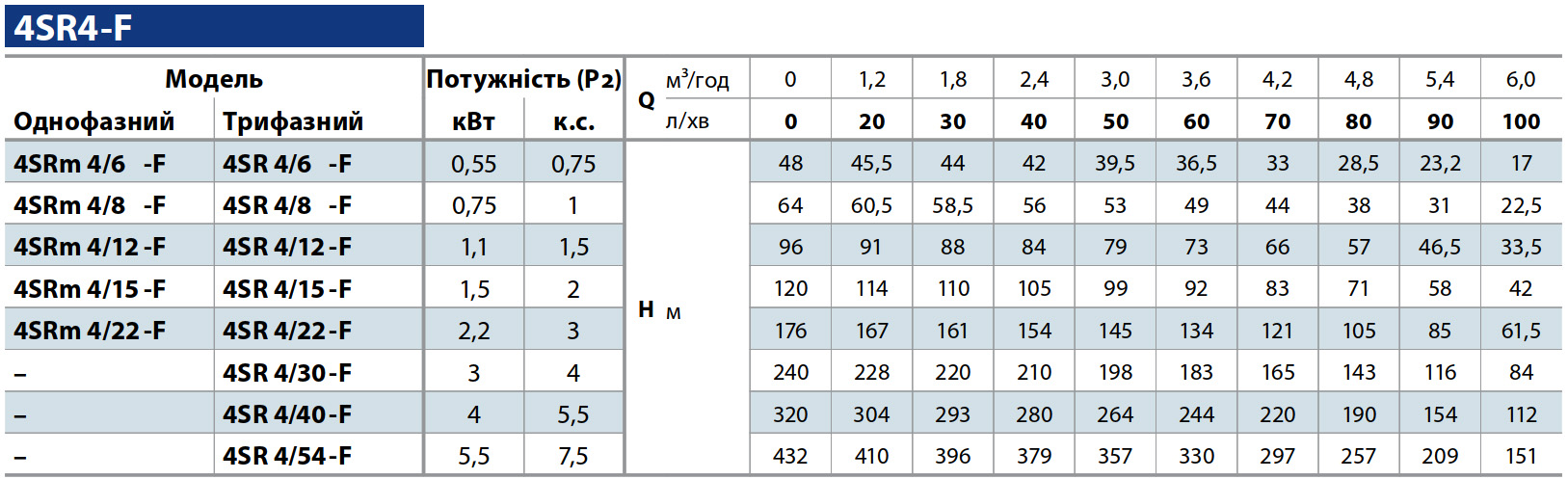 - Насоси 4SR розміщують у свердловинах діаметром не менше 4” (100 мм)