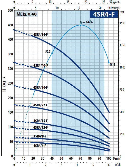 Pedrollo 4SR F-PD - Свердловинний насос із плаваючими робочими колесами та занурювальним електродвигуном 4PD (маслонаповнений).