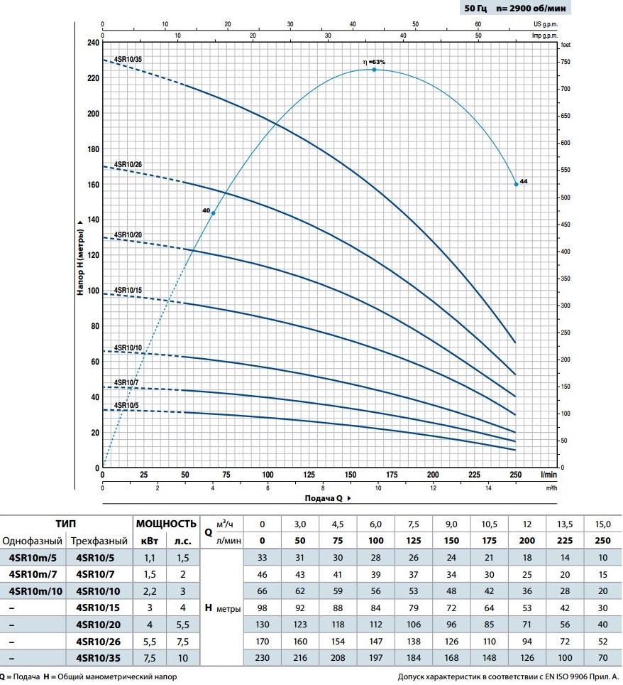 - Насоси 4SR розміщують у свердловинах діаметром не менше 4” (100 мм).