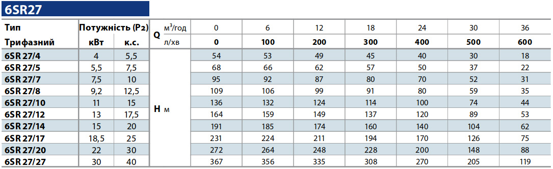 - Насоси 6SR розміщують у свердловинах діаметром не менше 6” (150 мм).
