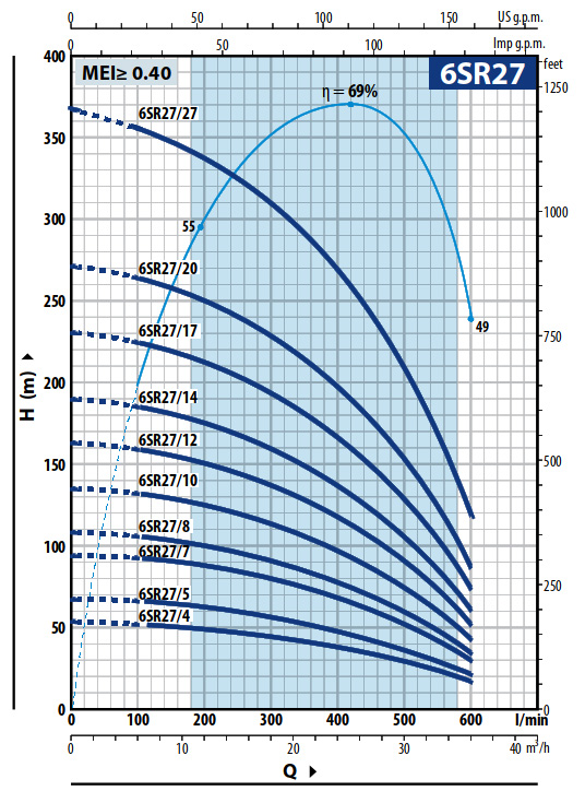 Насос для свердловини Pedrollo 6SR 27/4-PD | 100-600 л/хв | 18-53 м | 3~400 | 4 кВт (496B2704A)