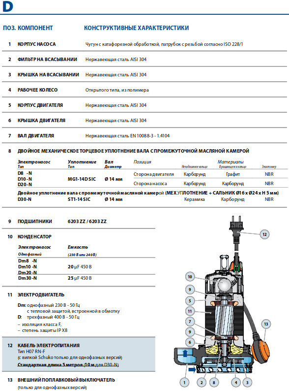 Насос дренажний занурювальний Pedrollo Dm 8 | 250 л/хв | 12.5 м | 0.55 кВт (48SGD908A1U)