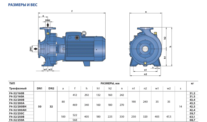 Насоси Pedrollo F4-32/160B | 3~400 | 200 л/хв | 0.37 кВт (4FP32160BA)
