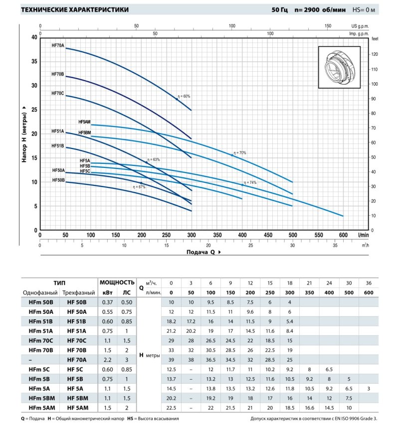 Робочі характеристики насоса: