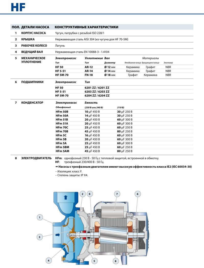 - Кришка корпусу насоса із нержавіючої сталі AISI 304 (чавун для HF 70-5М).
