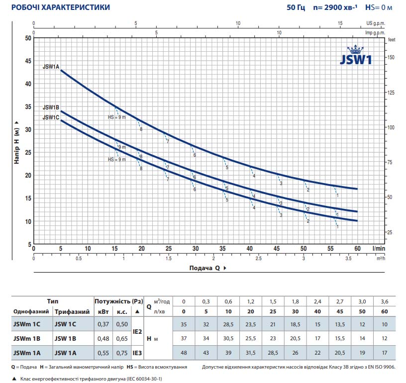 Робочі характеристики насоса: