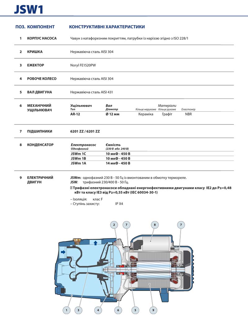 - Механічне ущільнення: кераміка – графіт – NBR.