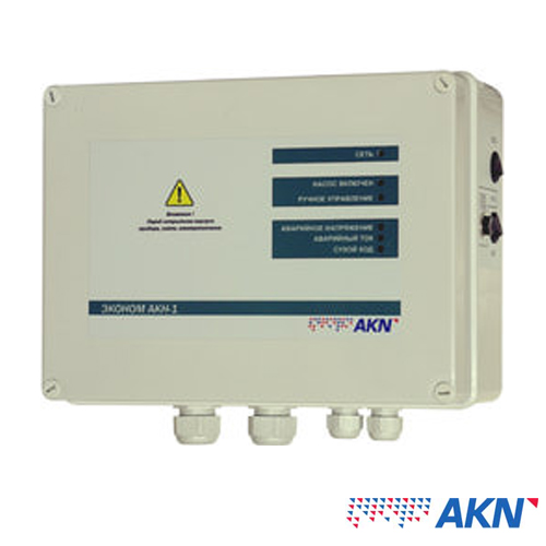 Економ АКН-1 – це пристрій для керування та комплексного захисту від аварійних режимів одного трифазного насоса потужністю до 11 кВт. Пристрій призначений для роботи в системах водопостачання із артезіанських свердловин, поливу, відведення стоків. До пристрою можуть підключатись трифазні насоси будь-яких фірм виробників. Вигляд пуску насоса – прямий.