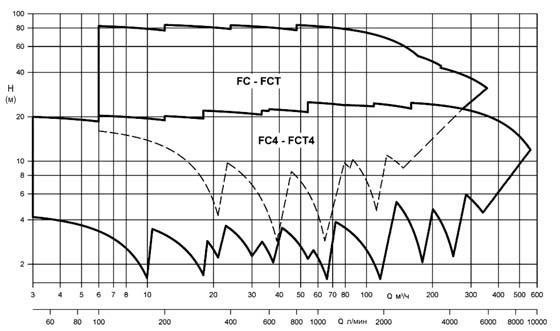 Насосы Lowara серии FCTE4 относятся к одноступенчатым центробежным нормальновсасывающим устройствам сдвоенного типа, в моноблочном исполнении, применяющихся для перекачивания жидкостей, не имеющих в своем составе агрессивных химических веществ, чья температура лежит в диапазоне от -10°C до +130°C градусов. В процессе изготовлении данного устройства использованы следующие материалы: адаптер, уплотнительная крышка и корпус агрегата изготавливаются из чугуна, вал – из нержавеющей стали марки AISI 316L, рабочее колесо производят из чугуна марки GG25 а некоторые его детали из бронзы, торцевое уплотнение – из композиции, состоящей из керамики, графита и эластомеров EPDM.