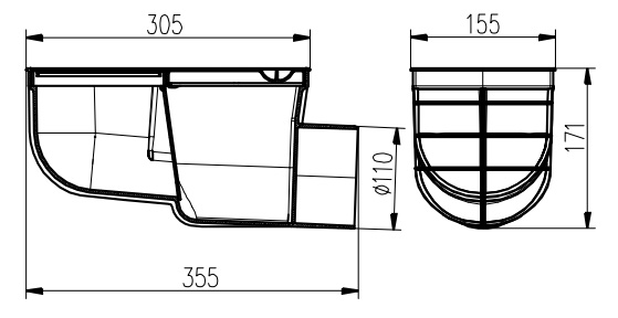 Дождеприемники имеет сухой клапан для блокировки запахов канализации и корзинку для улавливания мусора и предупреждения засорения канализации.