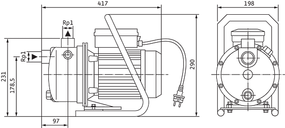 - Подсоединение со всасывающей и напорной сторон G 1