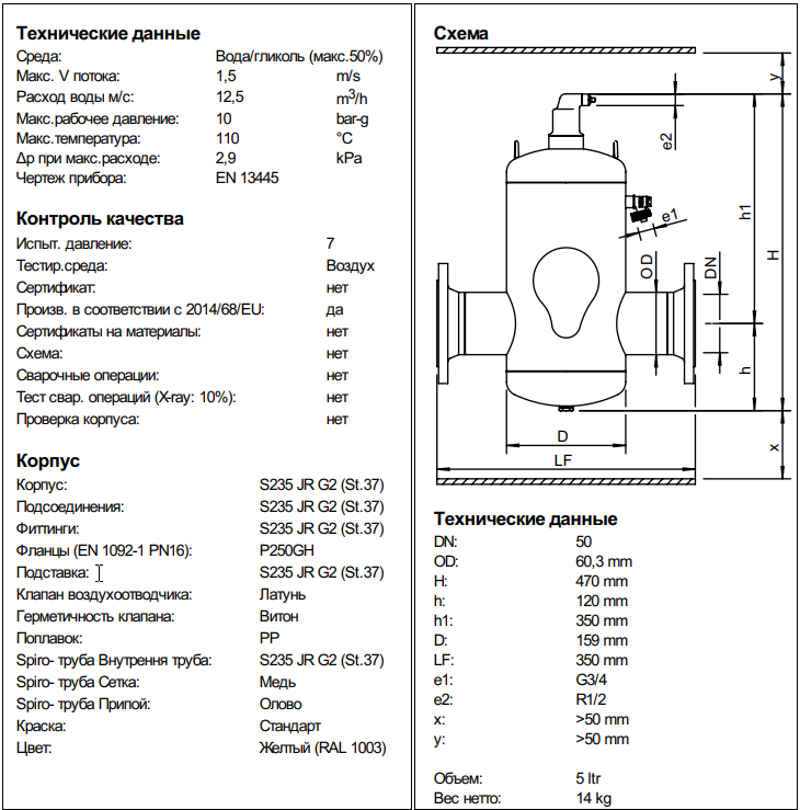 Сепаратор воздуха SpiroVent Air BA050F DN 50 PN10 (фланец)