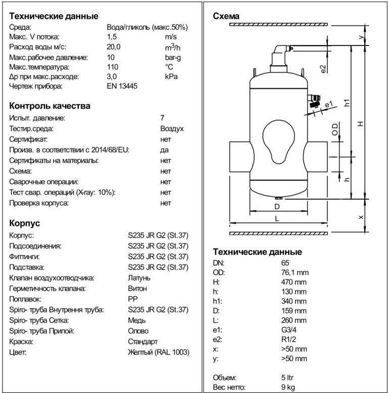 Сепаратор воздуха SpiroVent Air BA065L DN 65 PN10 (под приварку)