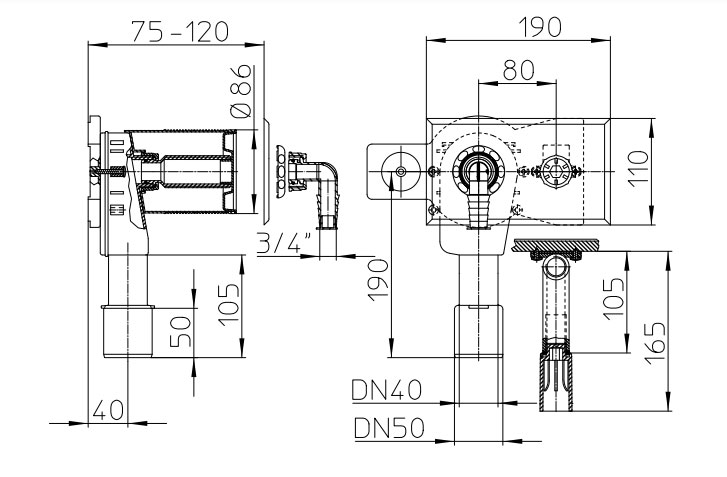 Встраиваемый сифон для стиральной или посудомоечной машины с подключением к канализации DN40/50