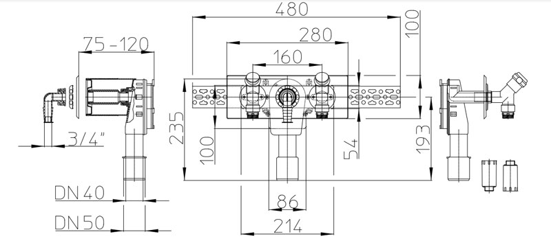 Встраиваемый сифон для стиральной или посудомоечной машины HL406.2 с подключением к канализации DN40/50