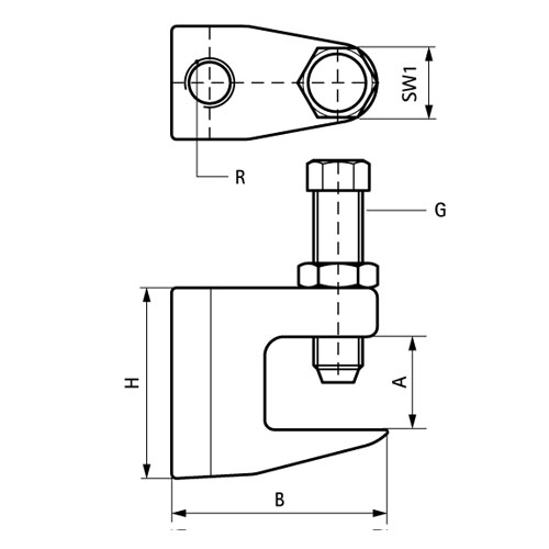 - материал: балочный зажим из литого чугуна; болт из закаленной стали, гайка из стали, электролитически оцинкованы
