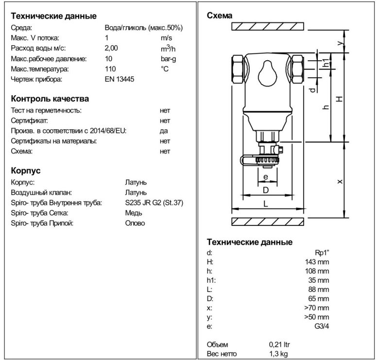 Сепаратор шламу SpiroTrap Dirt 1" PN10 (AE100)