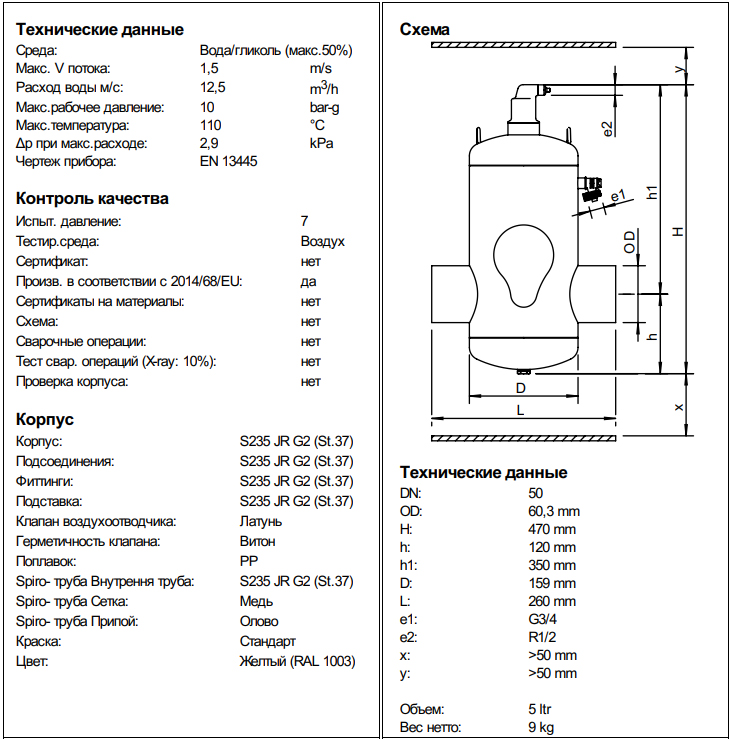 Сепаратор повітря SpiroVent Air BA050L DN 50 PN10 (під приварювання)