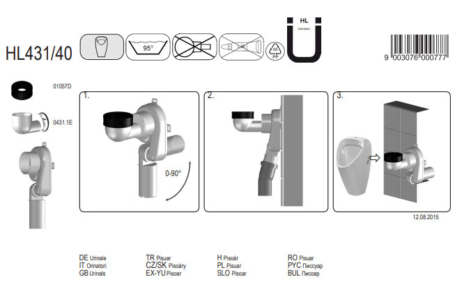 Сифон для пісуарів із вертикальним випуском HL431/40 DN40