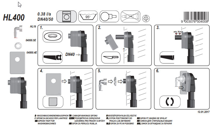 Сифон HL400 DN40/50 для пральної або посудомийної машини