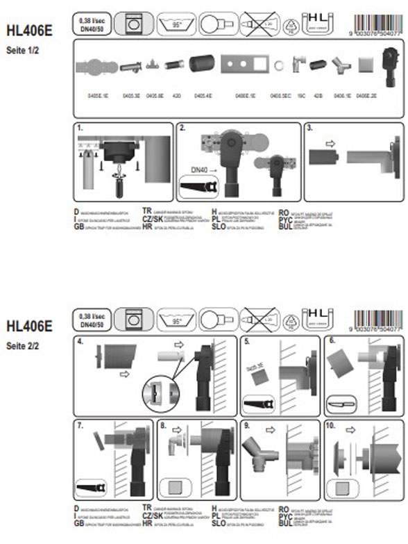Сифон HL406E DN40/50 для пральної або посудомийної машини