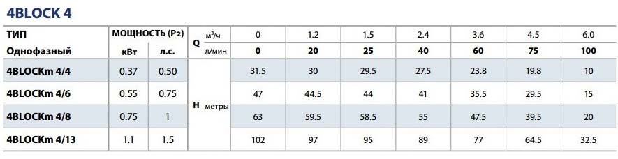 Насос свердловини Pedrollo 4BLOCKm 4/8 | 20-100 л/хв | 20-59,5 м | 1~230 | 0.75 кВт (49M42408LA1)