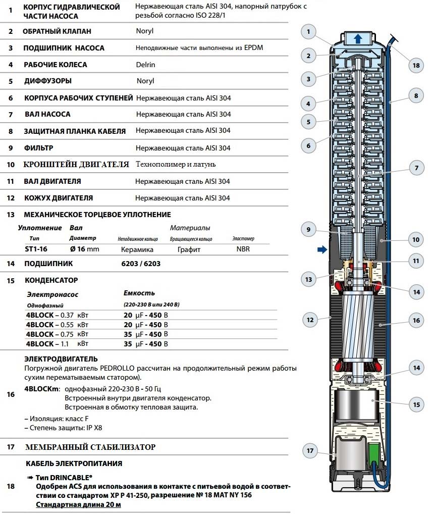 Насос свердловини Pedrollo 4BLOCKm 6/3 | 25-150 л/хв | 6-19 м | 1~230 | 0.37 кВт (49M42603LA1)